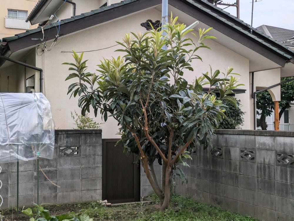 枇杷葉っぱ大きいから他所様のが落ちてきたらイラッとしますよね😥
