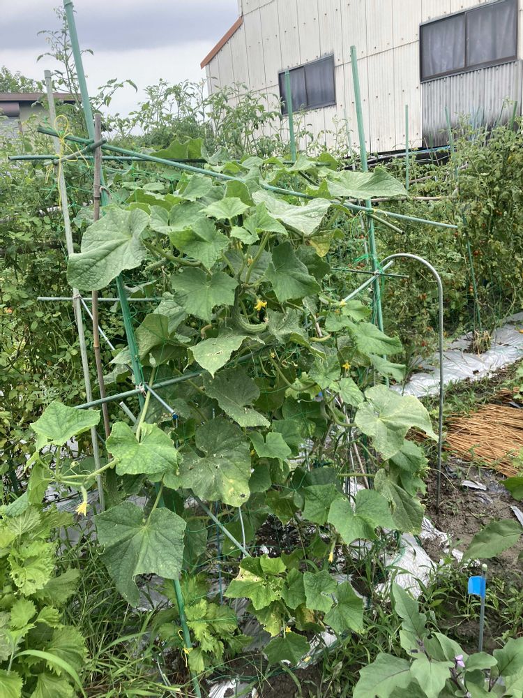 今日も収穫しましたが、さすがに着果が少なくなってきたようです。来週以降は地這きゅうりに期待です‼️🥒