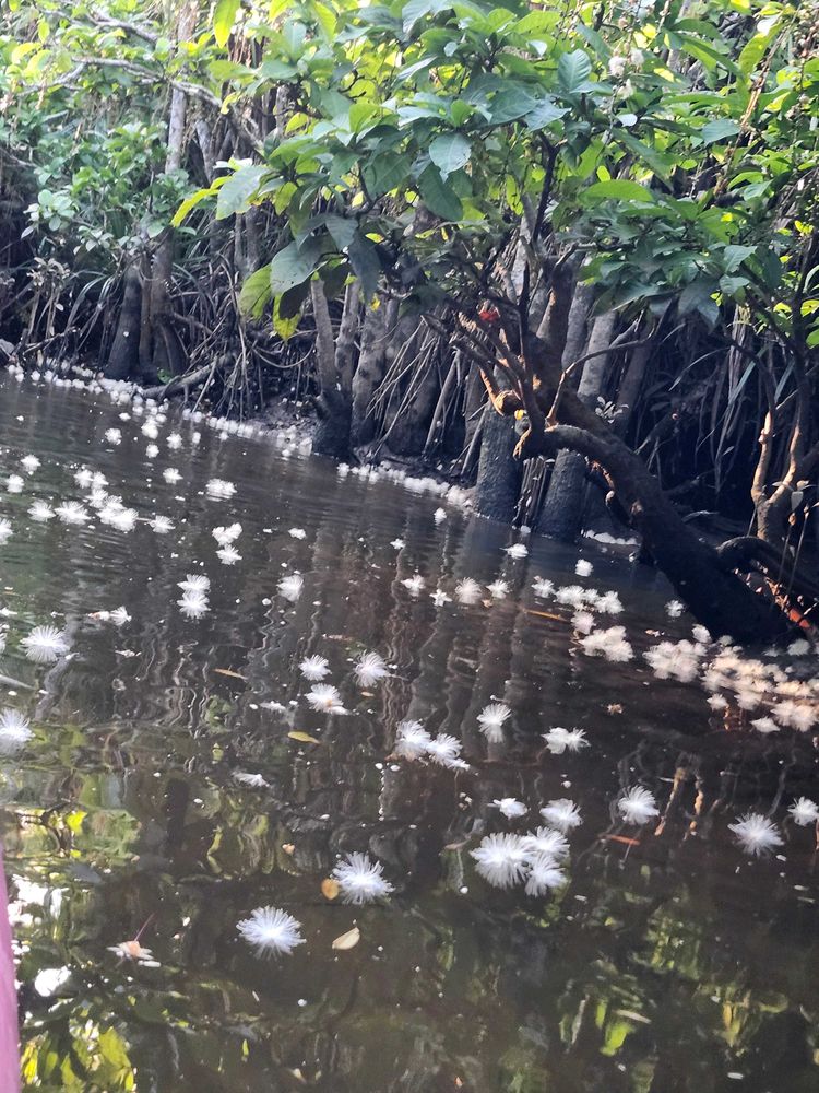 川に落ちてるサガリバナ🌸のお花がまたいいですね 儚いけど美しいお姿ですね😉