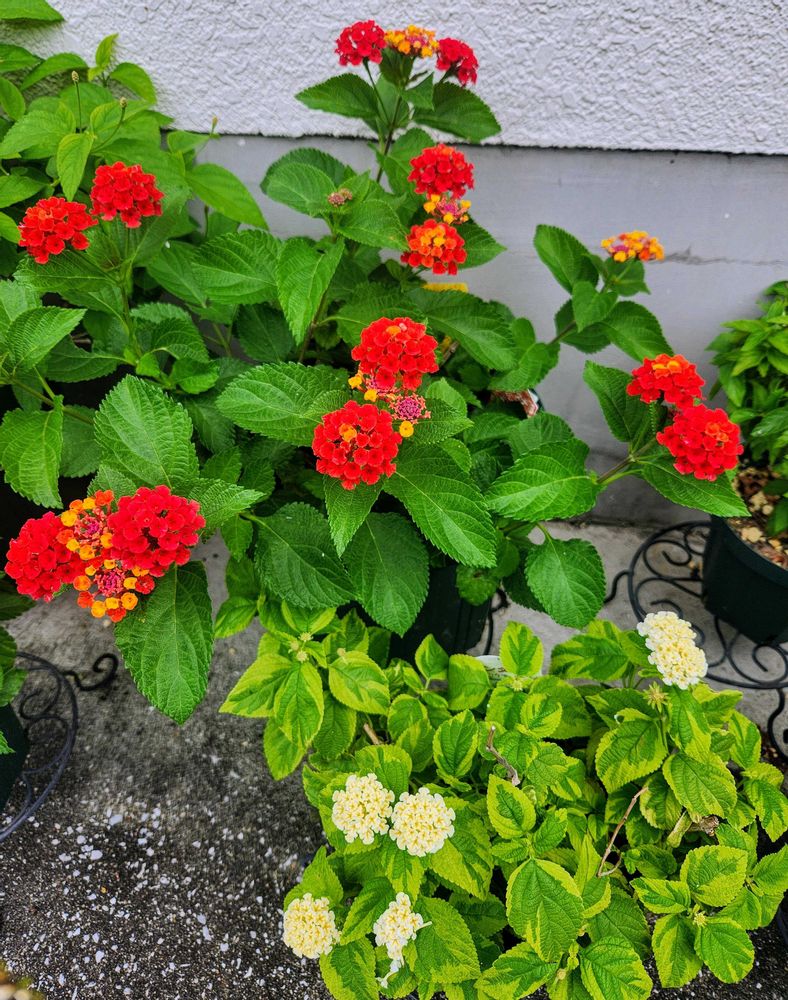 🪴鉢植えなのに、めっちゃ高く咲いていて❣️ 真っ赤なランタナと 🌿昨日、近隣で出会いました👏👏🤗