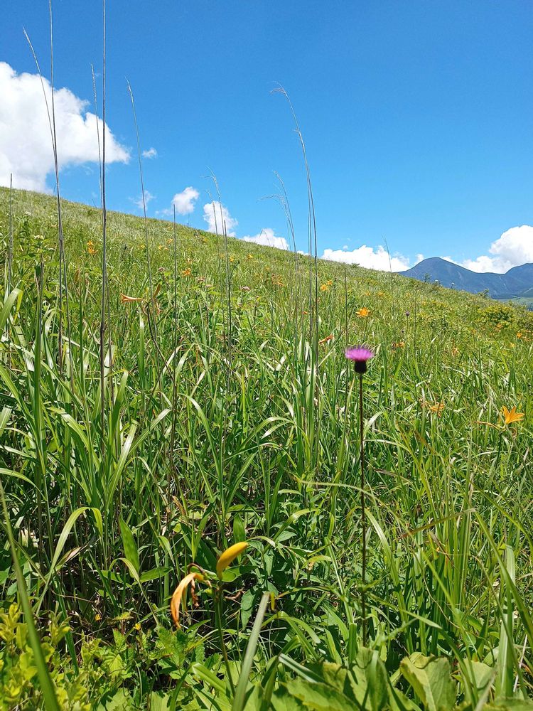 青い空と広々とした高原をニッコウキスゲを見ながら散策、最高ですね。