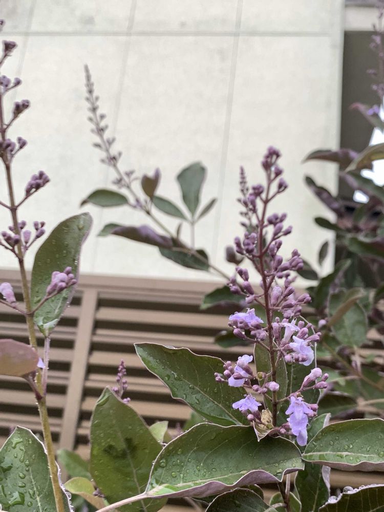 緑の葉っぱの裏と、花穂が薄紫なので、遠くから見ると全体が薄紫。