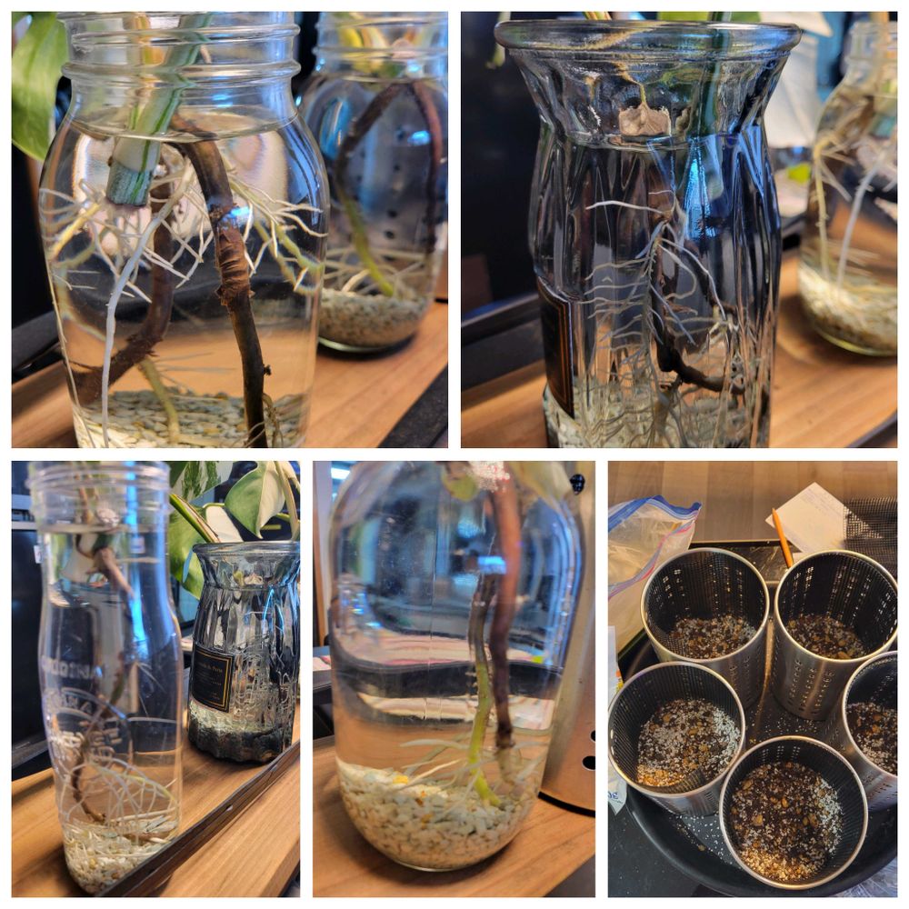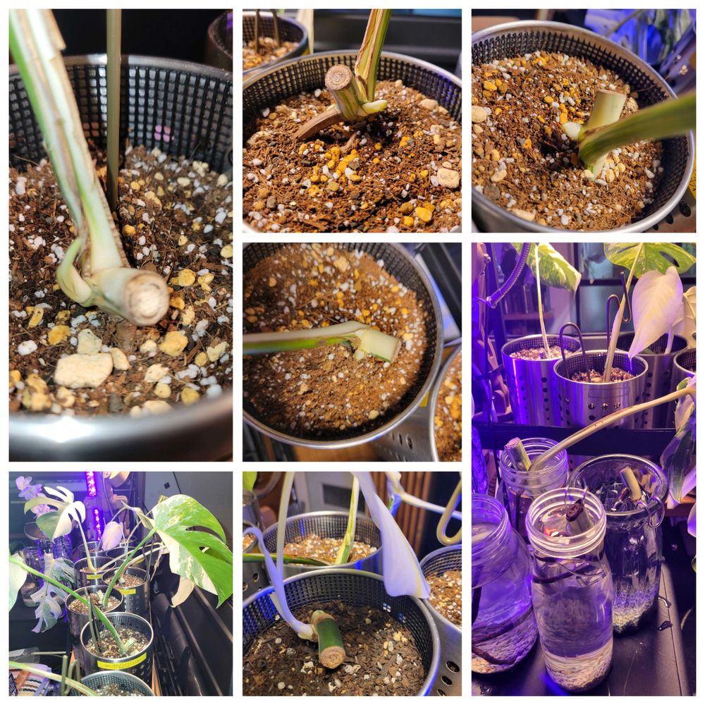 心配症なので2ヶ月弱の水耕栽培からの植替えモンステラ ボルシギアナ とアルボホワイトタイガー全株発芽確認しましたぁ😁
