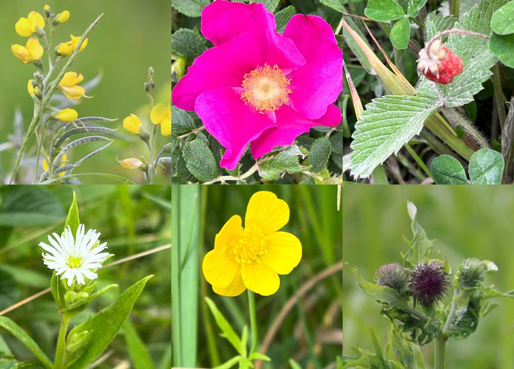 ⑤ センダイハギ、ハマナス、エゾノクサイチゴ、エゾオオヤマハコベ、シコタンキンポウゲ、エゾノミヤマアザミ。