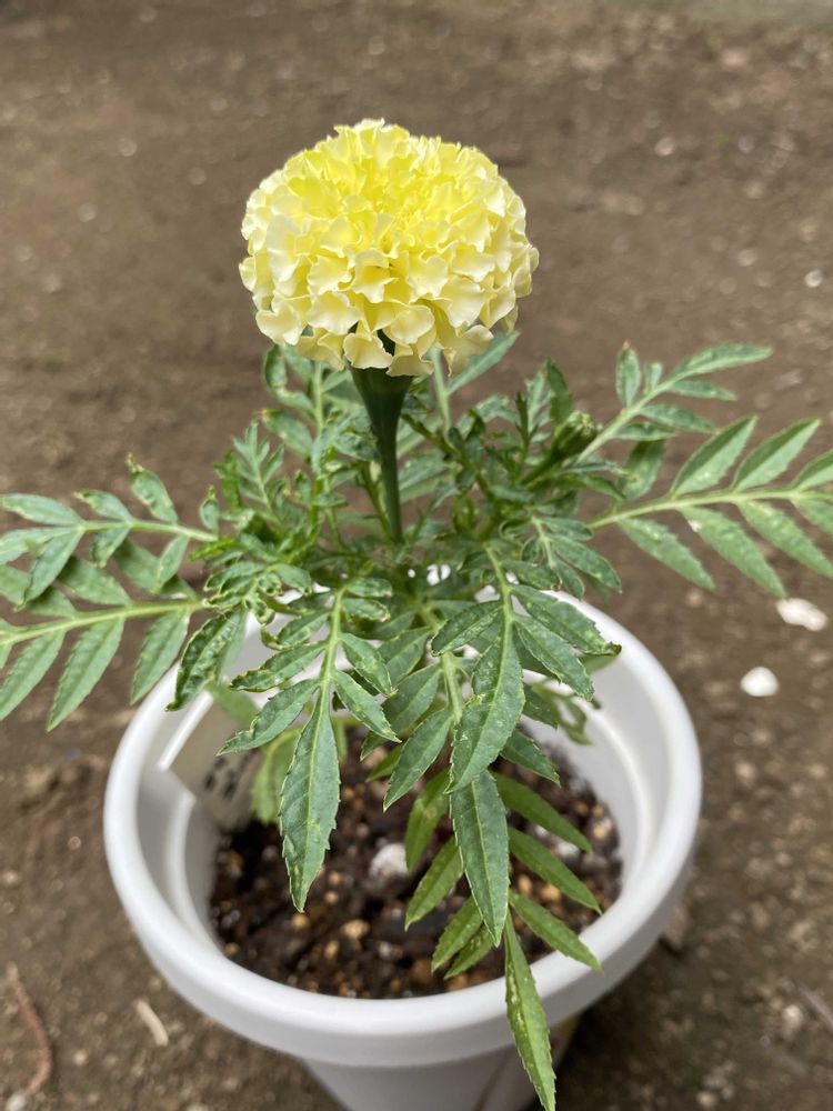 このマリーゴールド、最初は黄色みがかりますが、だんだんホワイト🤍になるらしい。