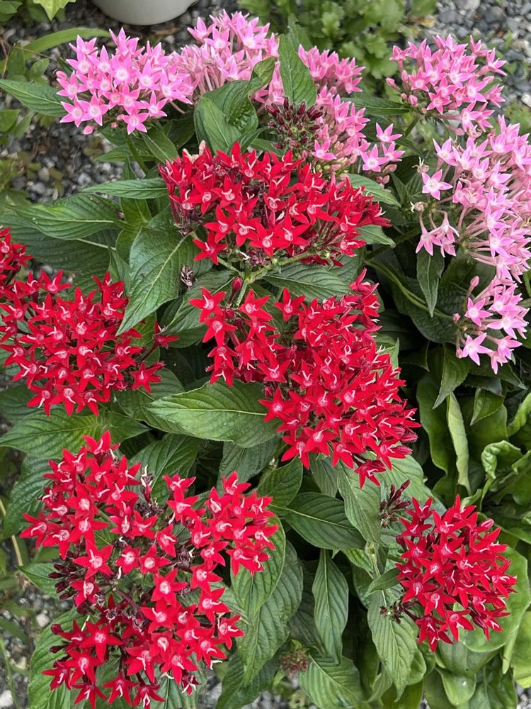 ⑤花数を増したペンタス赤とピンクの寄せ植え