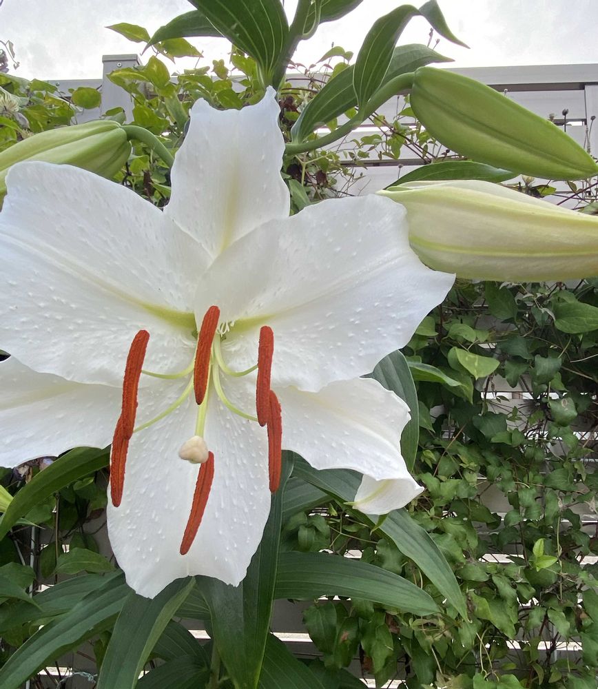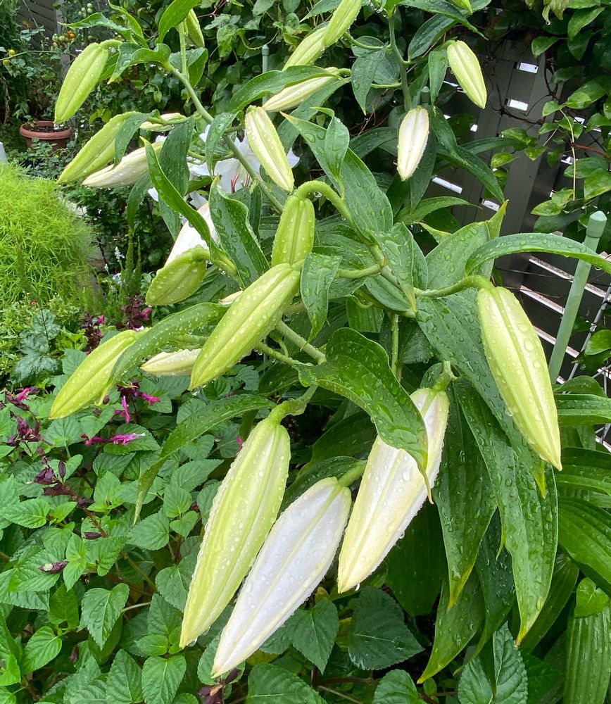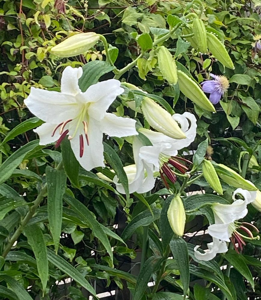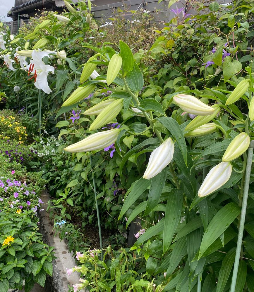 昨日クレマチスを植えている西花壇に二年生のカサブランカが開花し始めました☺️