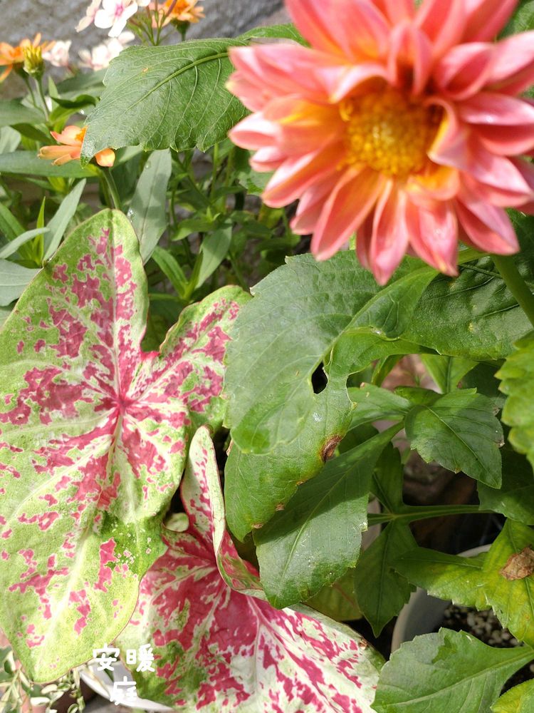 3 球根を掘り上げて越冬したカラジウムも、葉っぱが大きくなりました。