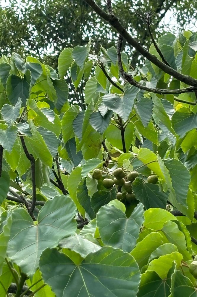 DIC川村記念美術館で2024.6.2咲いていたアブラギリの花が、緑色の実になっています。