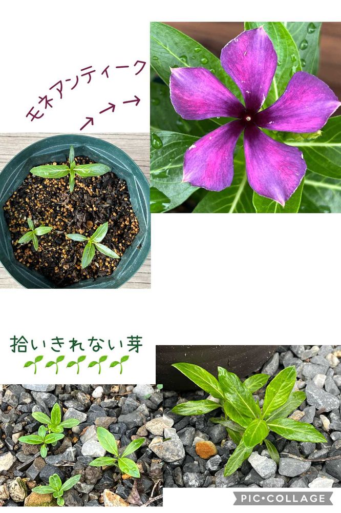 ① 冬越しチャレンジ(失敗)したミラモネの鉢から出た🌱 みんなポルカドットブラックですね😅