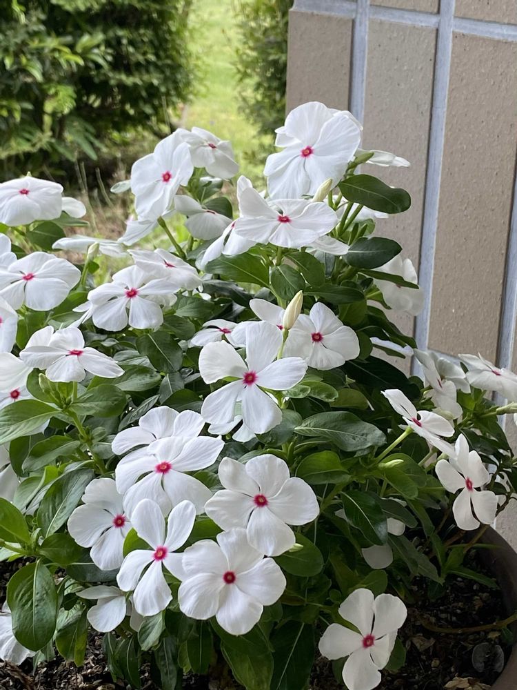 昨年植えた時、確かピンクのお花も寄せ植えしたのに白いお花ばかりでした。落ちているお花を拾ったらピンクだったので確認したらピンクも一房育っていました🤗💓