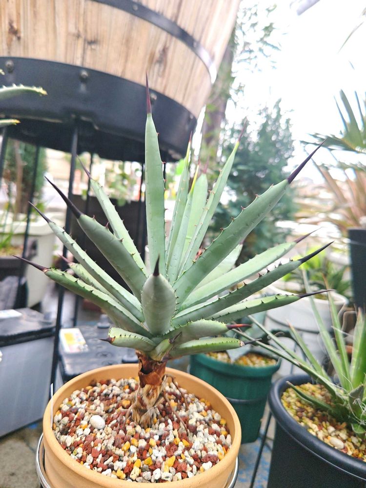 太いランナーを幹上がり風に植えたアガベらしからぬ姿と⚫棘が素敵な子😍