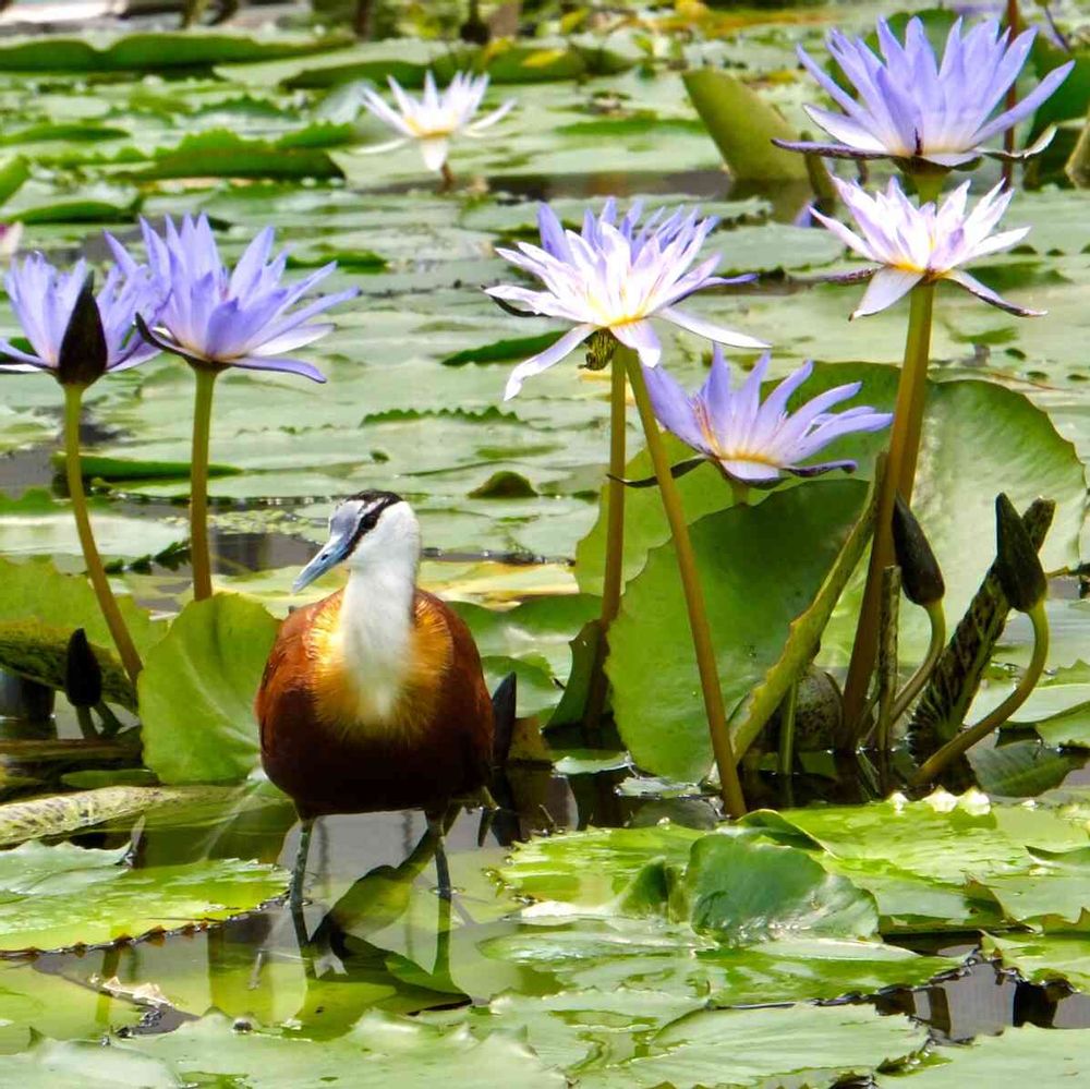 睡蓮とアフリカレンカクの色合いがきれい☺️