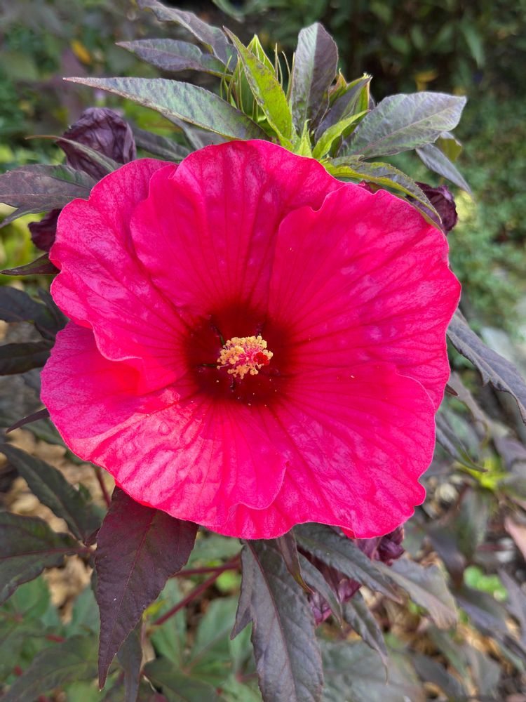 Hibiscus moscheutos/Hibiscus. Malvaceae. Malvales. Magnoliopsida. Tracheophyta Commonly called/Swamp rose mallow Native to/Southeastern United States Symbolism/Friendship. Appreciation for future *Produces broadly ovate to lance-shaped unlobed or shallowly 3-to5-lobed, toothed, mid-green leaves, 3-9in(8-23cm)long, 8in(20cm)across. *Tea from boiled leaves has been used to relieve cough, sore throat, and digestive inflammation. *Carl Linnaeus, who gave us the Latin based taxonomy of plants that became the standard, collected Hibiscus rosa-sinensis and gave it that name in 1753. Photographed 7/14 10:09am 2024 Posted 7/15(Monday) 11:43am 2024