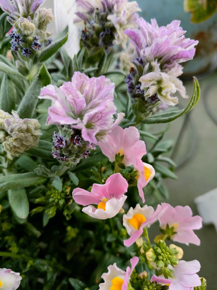 フレンチラベンダー🪻、可愛いですねー☺️真っ赤なグラジオラスと赤いゆりも綺麗です😊