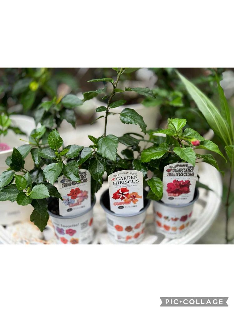 ポット苗のハイビスカスのトレーに珍しいハイビスカスが混じっていました。