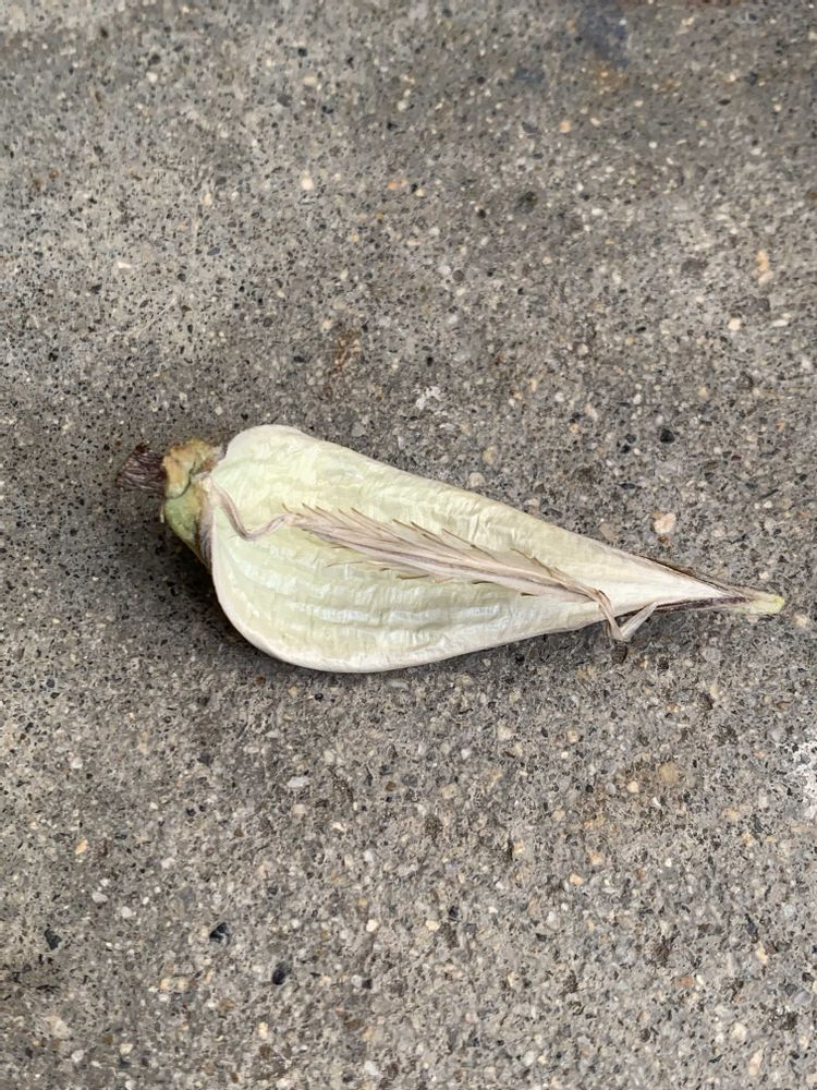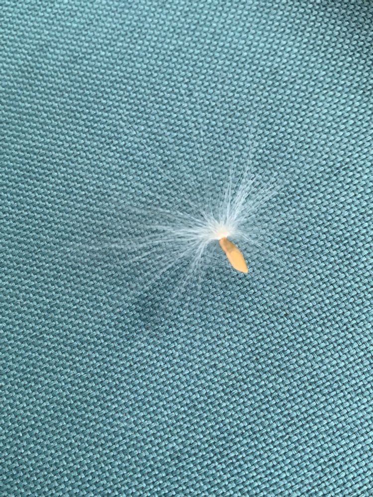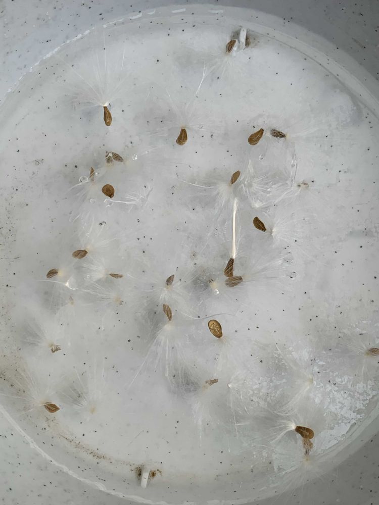 種子が何粒あるのか確認しようと考えてたところ、その前に種子からタンポポみたいな綿毛が生えて飛んでました‥( >ω< )
