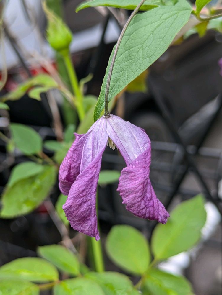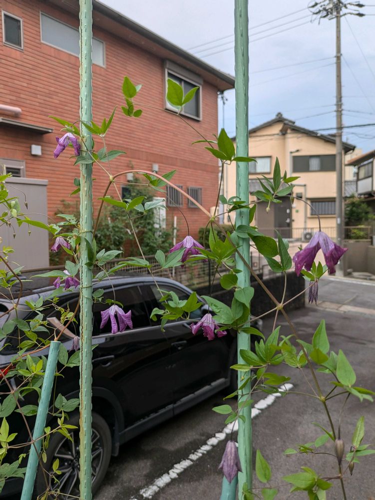カラフルなクレマチスさん元気をもらえます💜「ひとり居の朝やうち向ふ鉄線花」(水原秋櫻子)水分補給を忘れずに🤗💦🤗