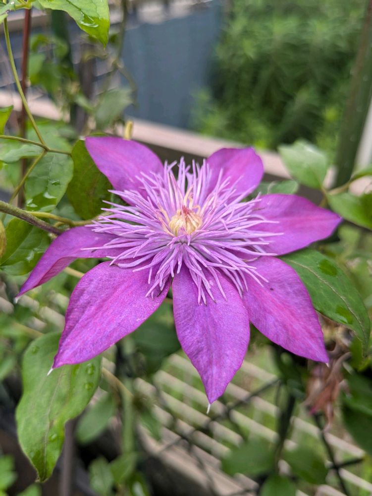 クレマチス エレバンの2番花が、雨の後に咲いていました。