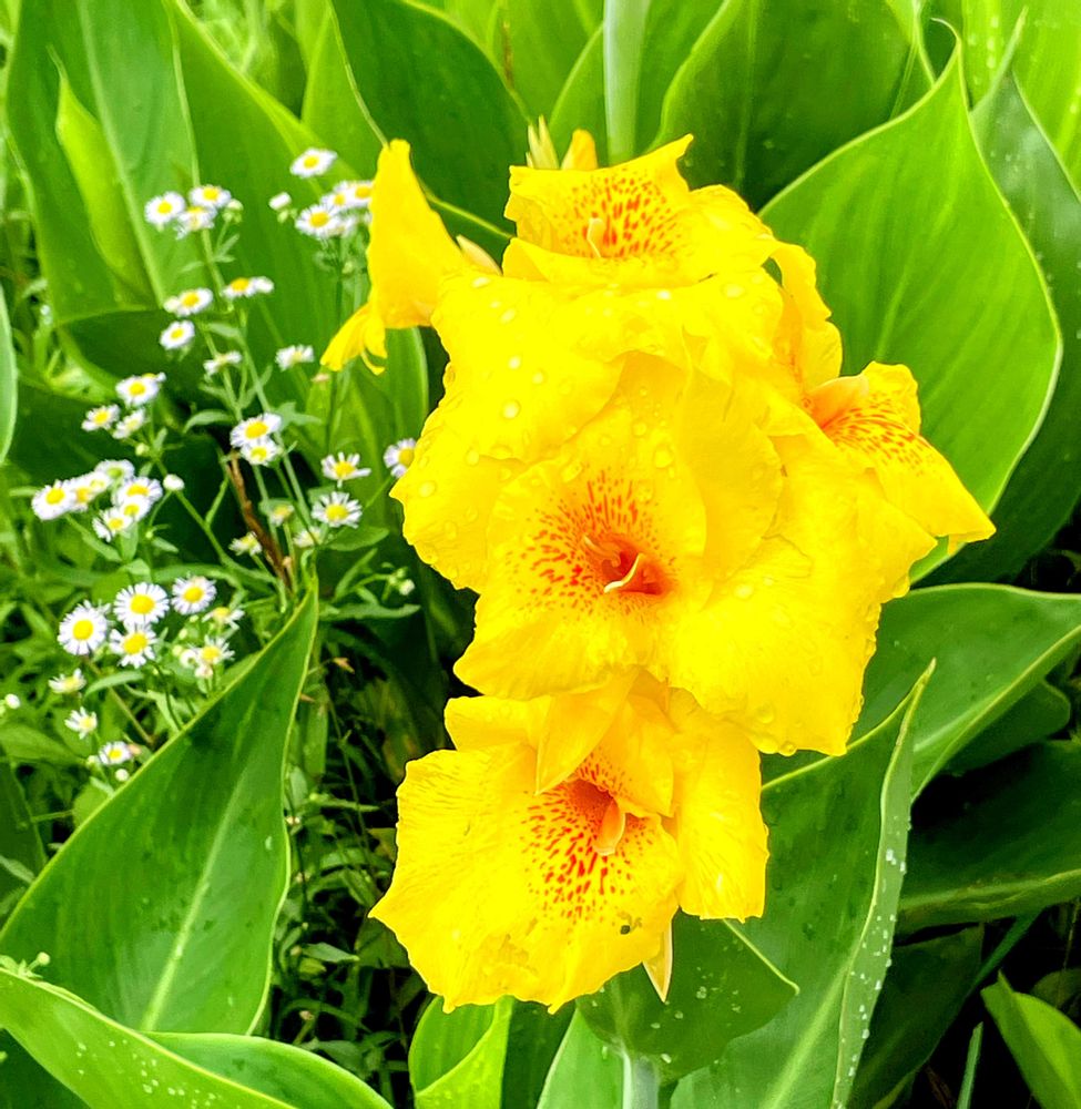 朝の散歩道,黄色いカンナの花,糸米地下道入口の花壇にの投稿画像