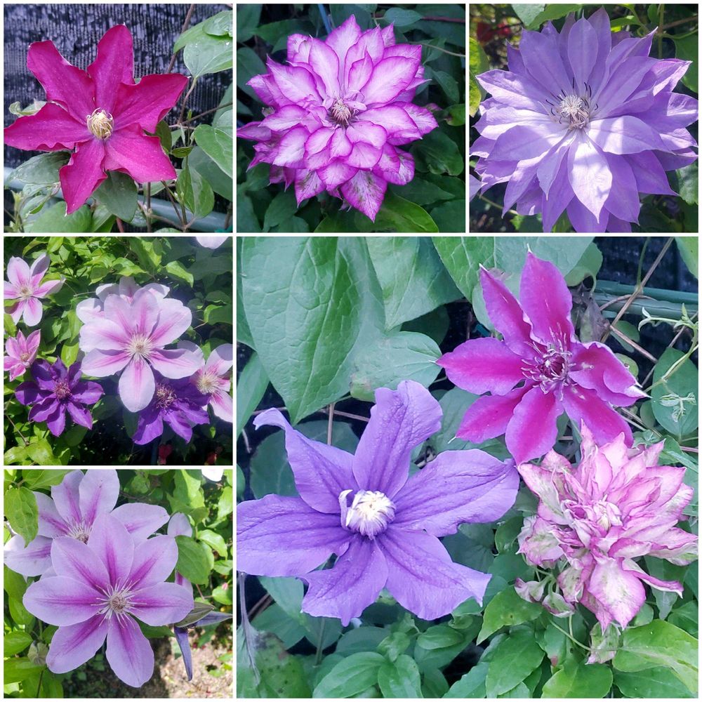 カラフルなクレマチスさん元気をもらえます💜「ひとり居の朝やうち向ふ鉄線花」(水原秋櫻子)水分補給を忘