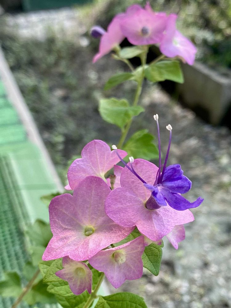 ピンクのガクが花に見えて
