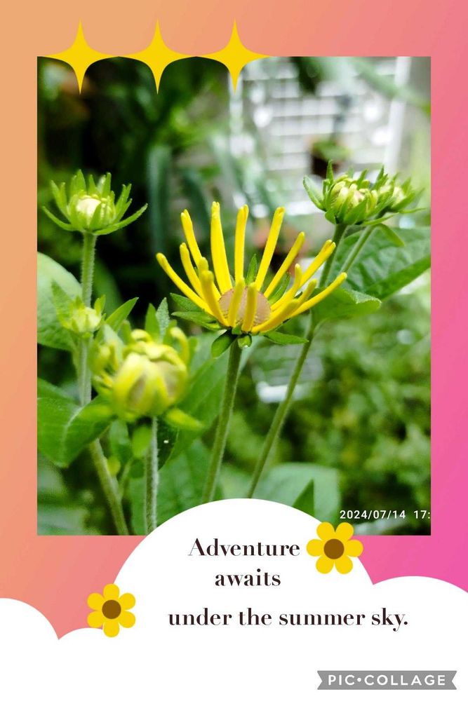 ストローの様な筒状の花弁を持つ花径8㌢程の黄色の花が咲きます 強健で野性的な草姿を楚々とした繊細な美しさを持つ花が優しい印象にしてくれます