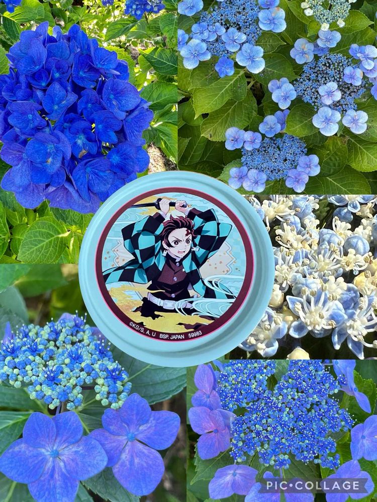 水の呼吸に合わせて青い紫陽花💙