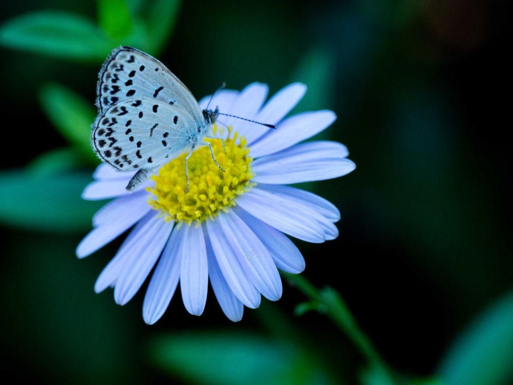 5枚目、嫁菜の花⁈に止まったシルビアシジミ蝶