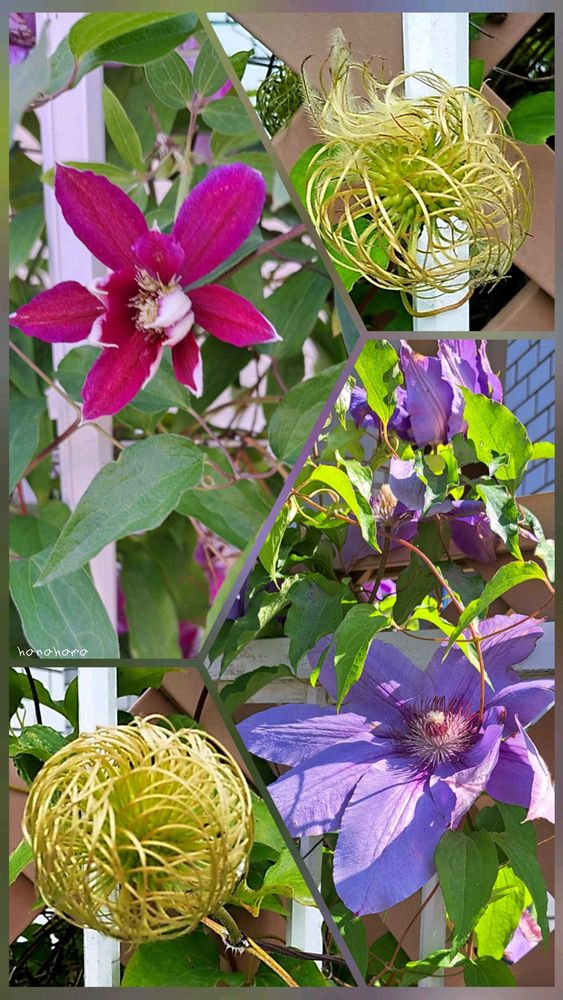 カラフルなクレマチスさん元気をもらえます💜「ひとり居の朝やうち向ふ鉄線花」(水原秋櫻子)水分補給を忘れずに🤗💦🤗