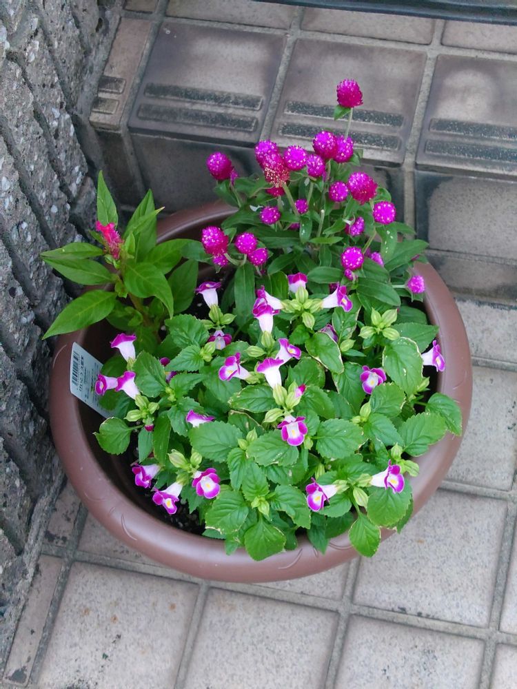 爽やかな装いを見せて咲き誇るトレニア、センニチコウの華やぎ、素敵です(⌒‐⌒)🎵