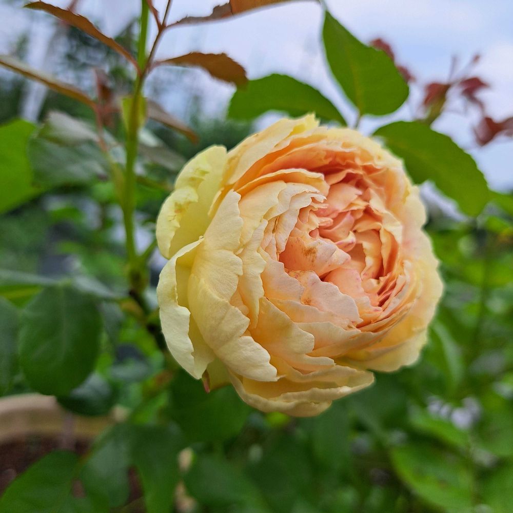 初めて新苗を育てています。摘蕾し忘れたので一輪だけ咲かせてみました。