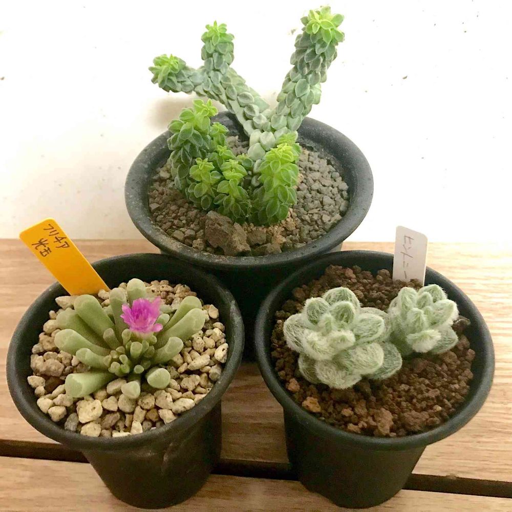 お決まりのモケモケとツルツル(窓持ち)の多肉植物をお持ち帰り。