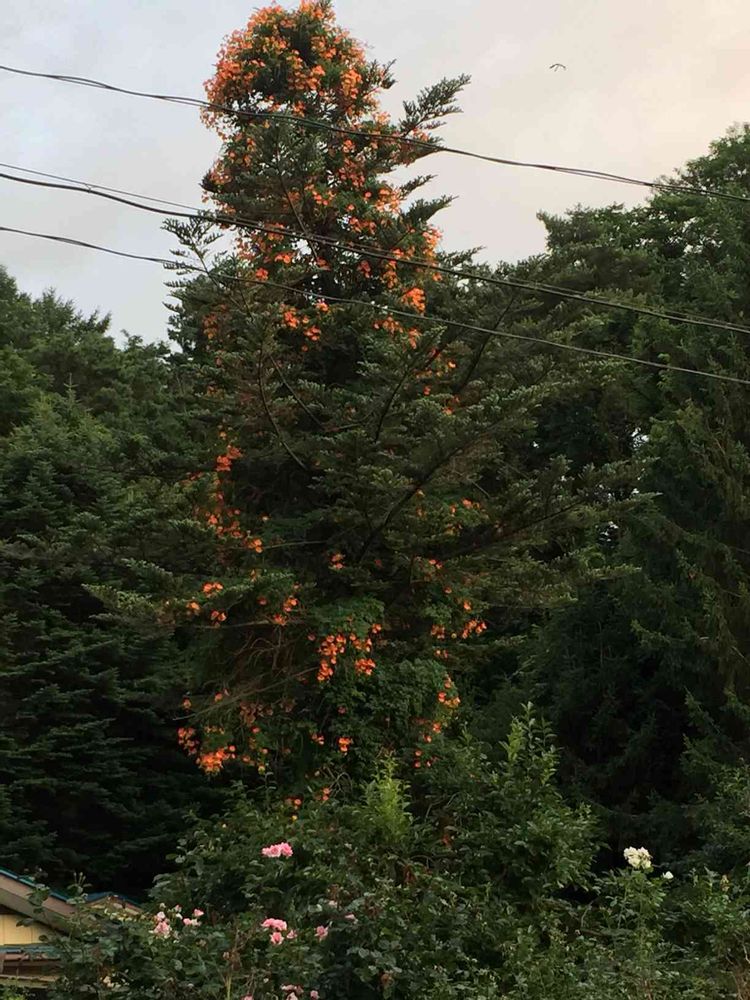 ノウゼンカズラ🌸、杉🌲の木を乗っ取って