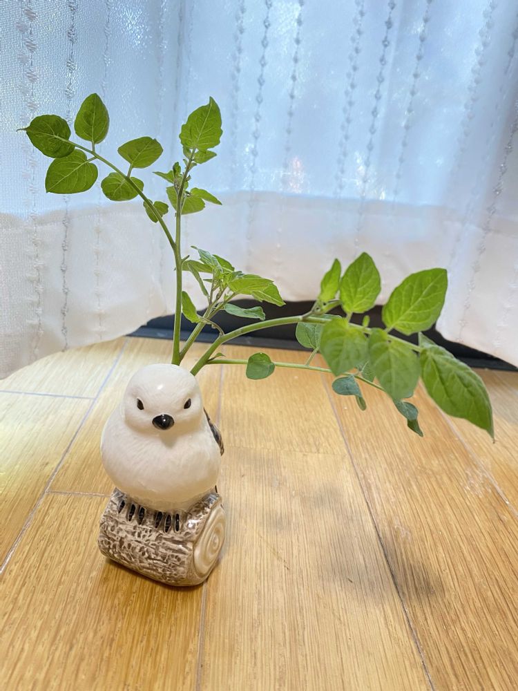 シマエナガの一輪挿しはインコズの豆苗用に買いましたが倒す倒す😅