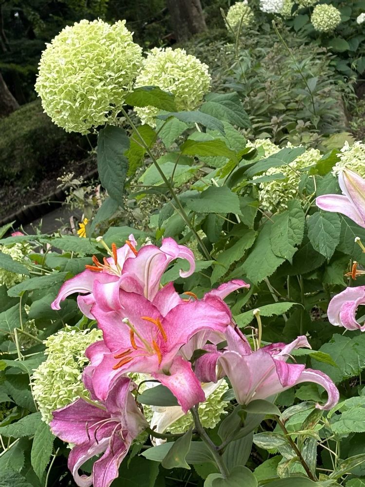 アナベルさんと、百合が素敵ですね