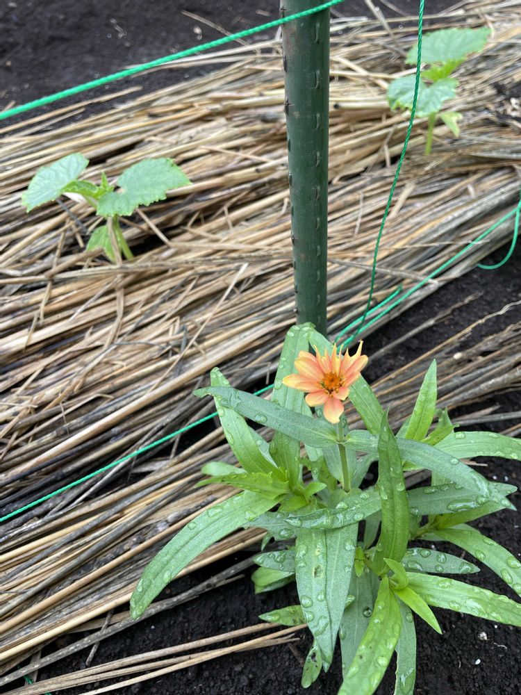 秋キュウリ植え付けました!ジニアを近くに植えるとウリハムシが来ないと聞いたので一緒に植えてみました🌱効果があると良いですが😆