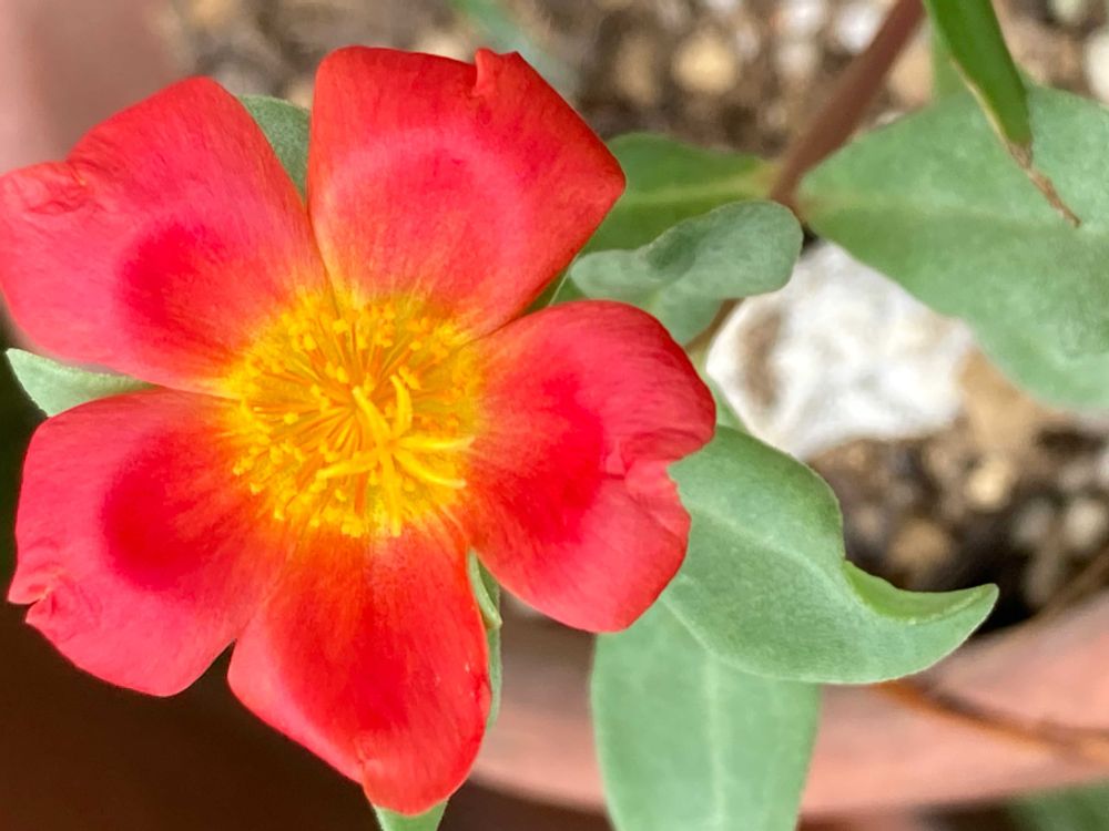 おはようございます😃ポーチュラカ🌸放ったらかしガーデンにて。放ったらかしの鉢植え、何故か咲いた〜👍😃🎶