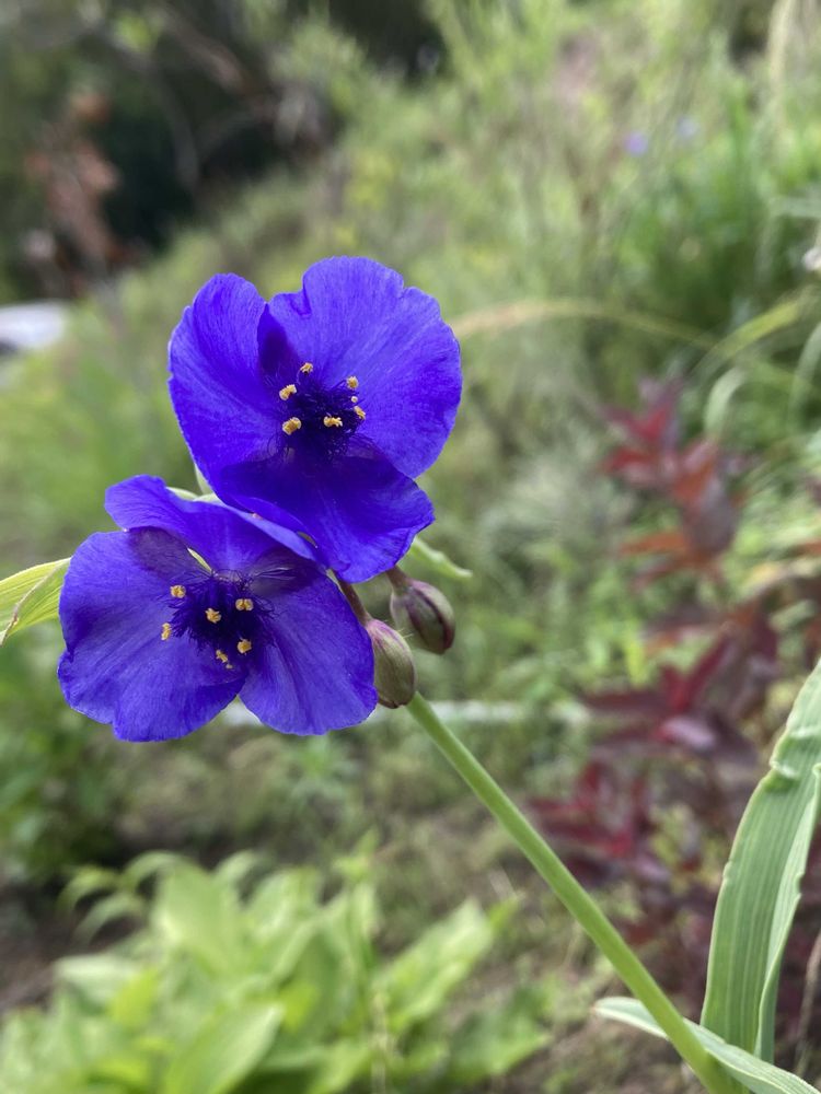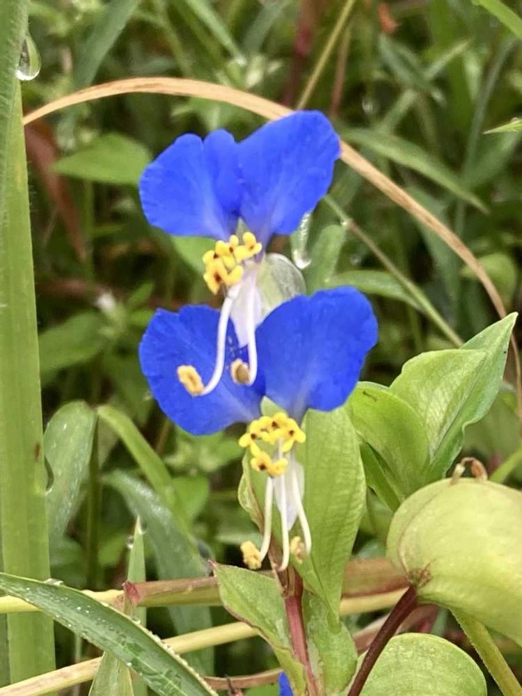 少し日陰の所にこんな青いツユクサが咲いてましたよ💙