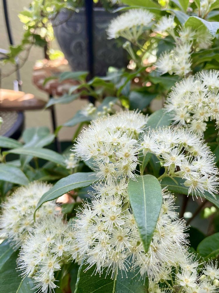 鉢植えで育てて3年目のレモンマートルが咲き始めました🍋
