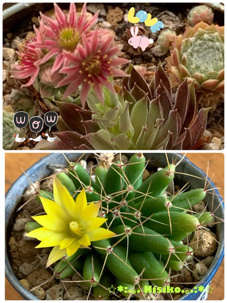 センペルビウムと名前忘れた多肉君のお花が開花しました。
