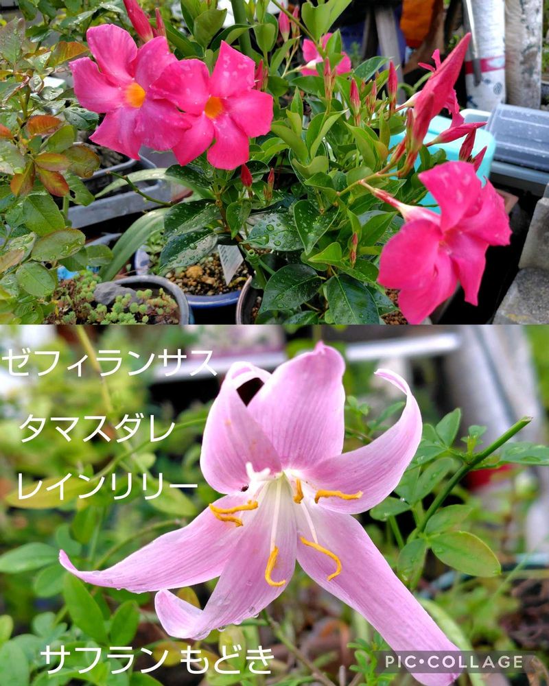 ④サンパラソル元気に咲いているのでつい パシャリ 何ともややこしい いくつも 名前のあるゼフィランサスちなみに花の上向きと横向きでハブランサスとゼフィランサスに別れるらしい😂
