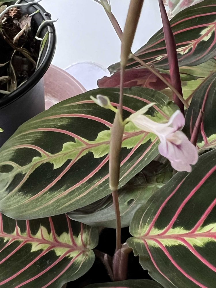 年末、おたまちゃんの植物救済市で出会ったマランタレウコネルラに花が咲いててびっくり🫢