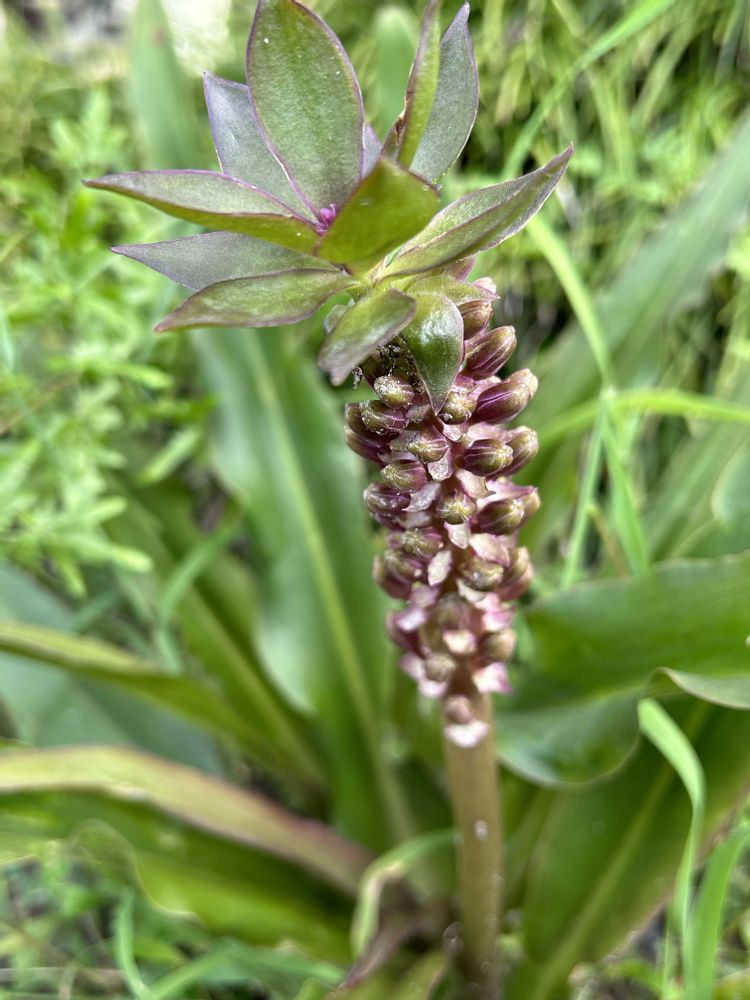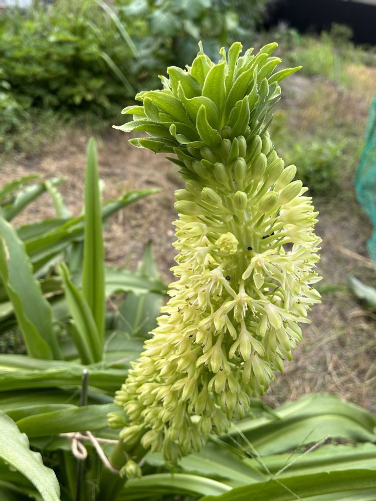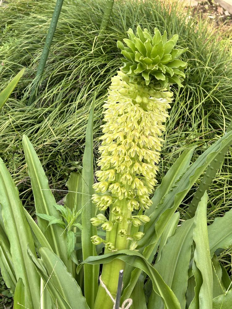 パイナップルリリーが成長しすぎて、花茎が倒れていました
