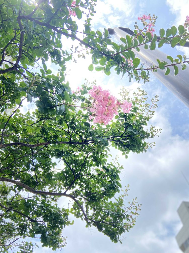 青空💙にピンクの百日紅 色合い綺麗ですね。❣️