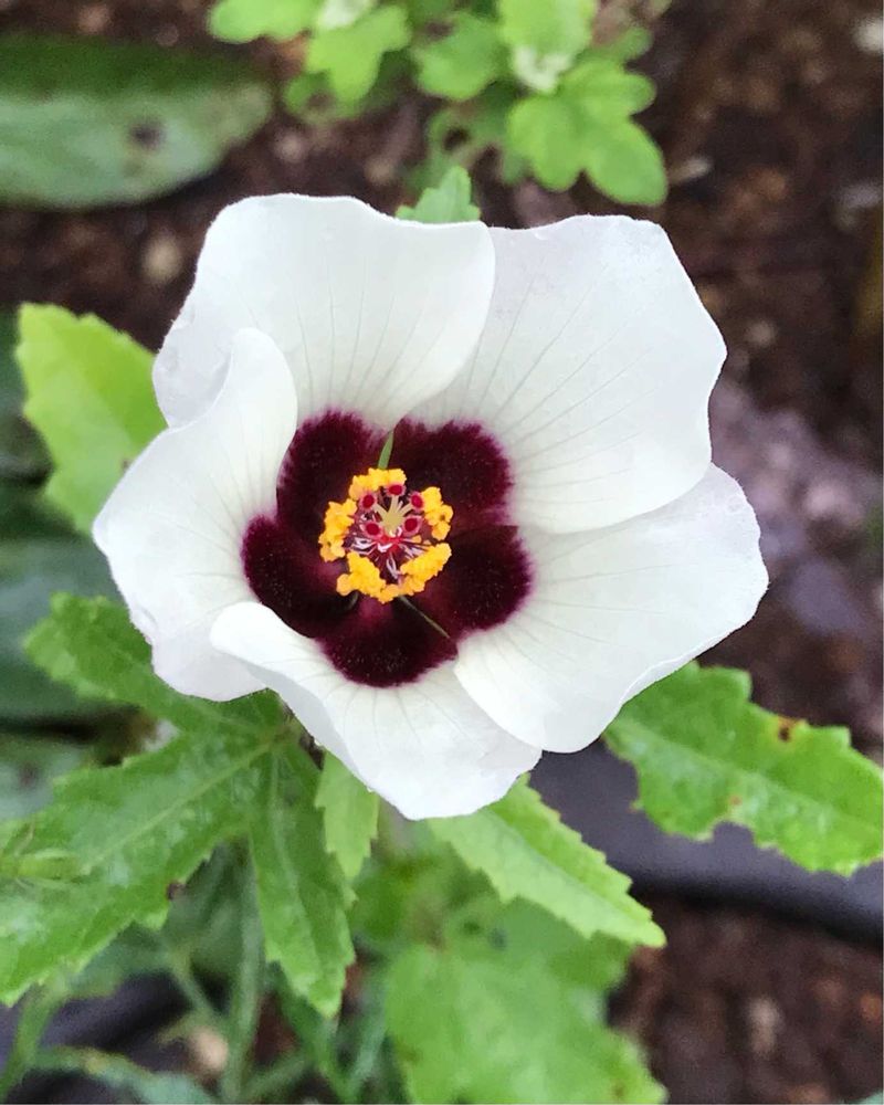 零れ種で、ハイビスカス トリオヌムの花が咲きました。10年前に、友人から種を頂き、毎年この花を見るのが楽しみです。