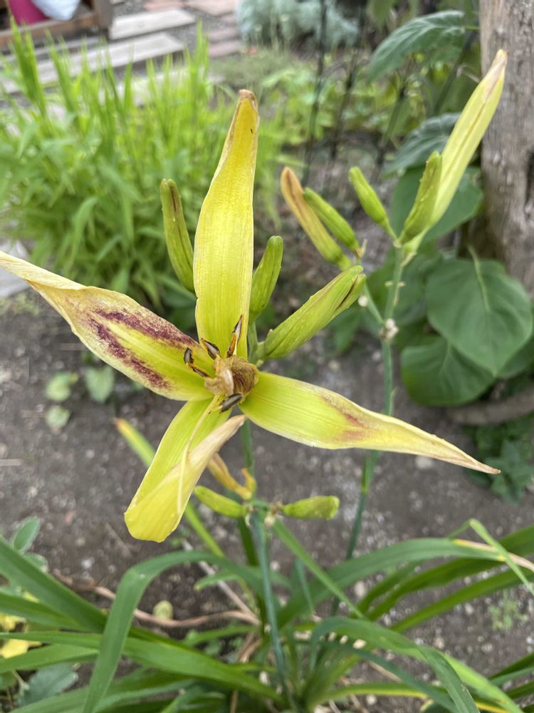 今朝のヘメロカリスさんは小さめの可愛い花が一輪咲いていました。