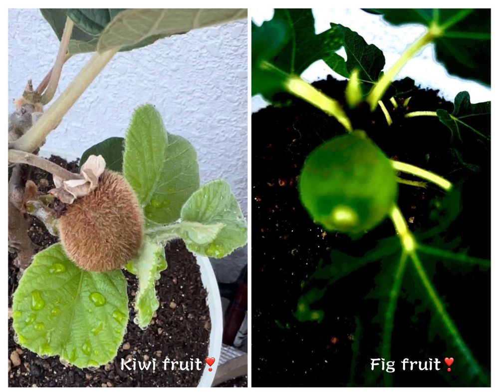 📝この写真画像は、ベランダで🪴鉢植えしている🥝キウイとイチジクの小さな果実を撮ったものデス🐶