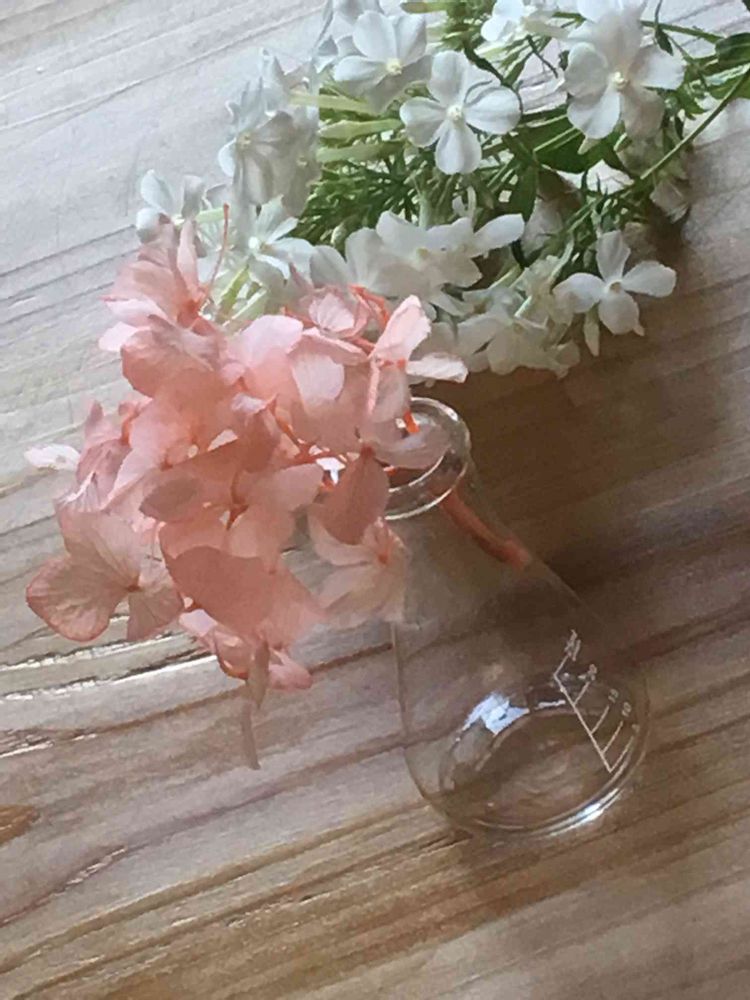 ピンクの紫陽花、プリザーブドフラワーかと思いました。可愛い(๑>ᴗ<๑)です。漂白アジサイの方法、教えて欲しいです🤗💕よろしく🙏