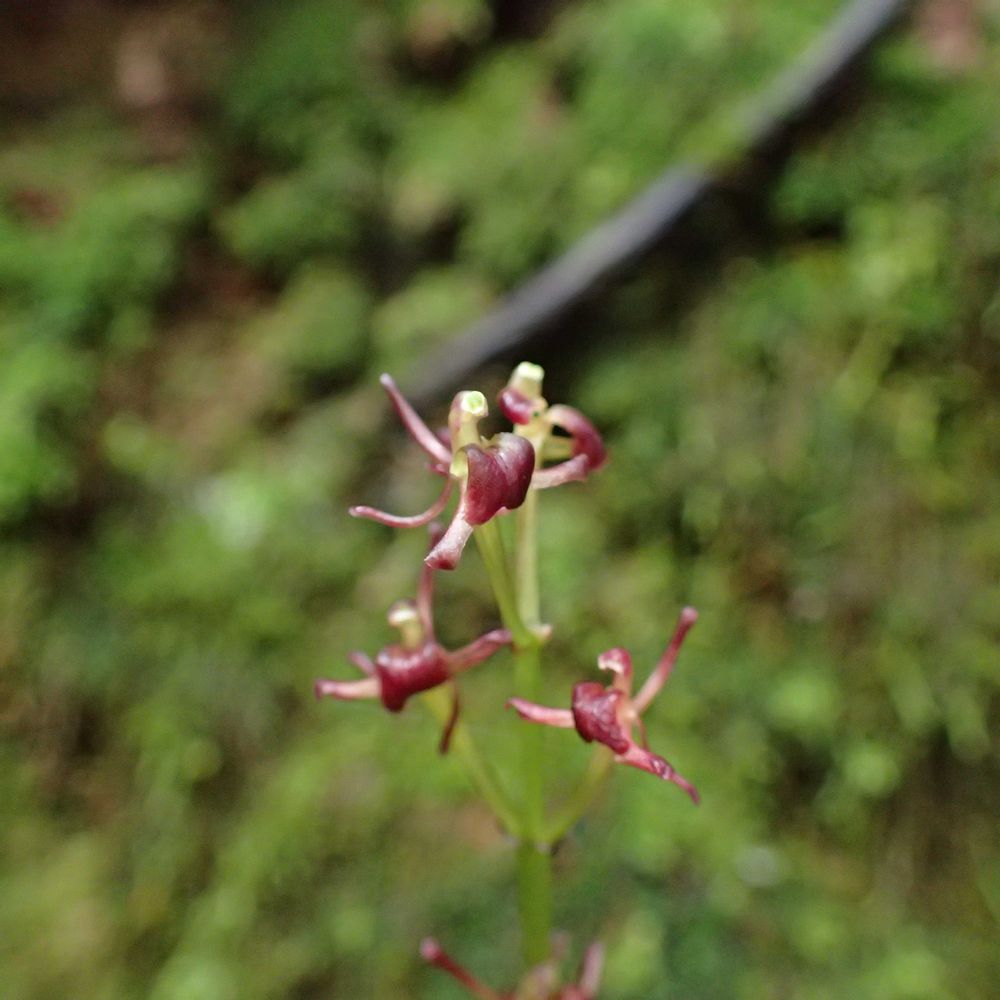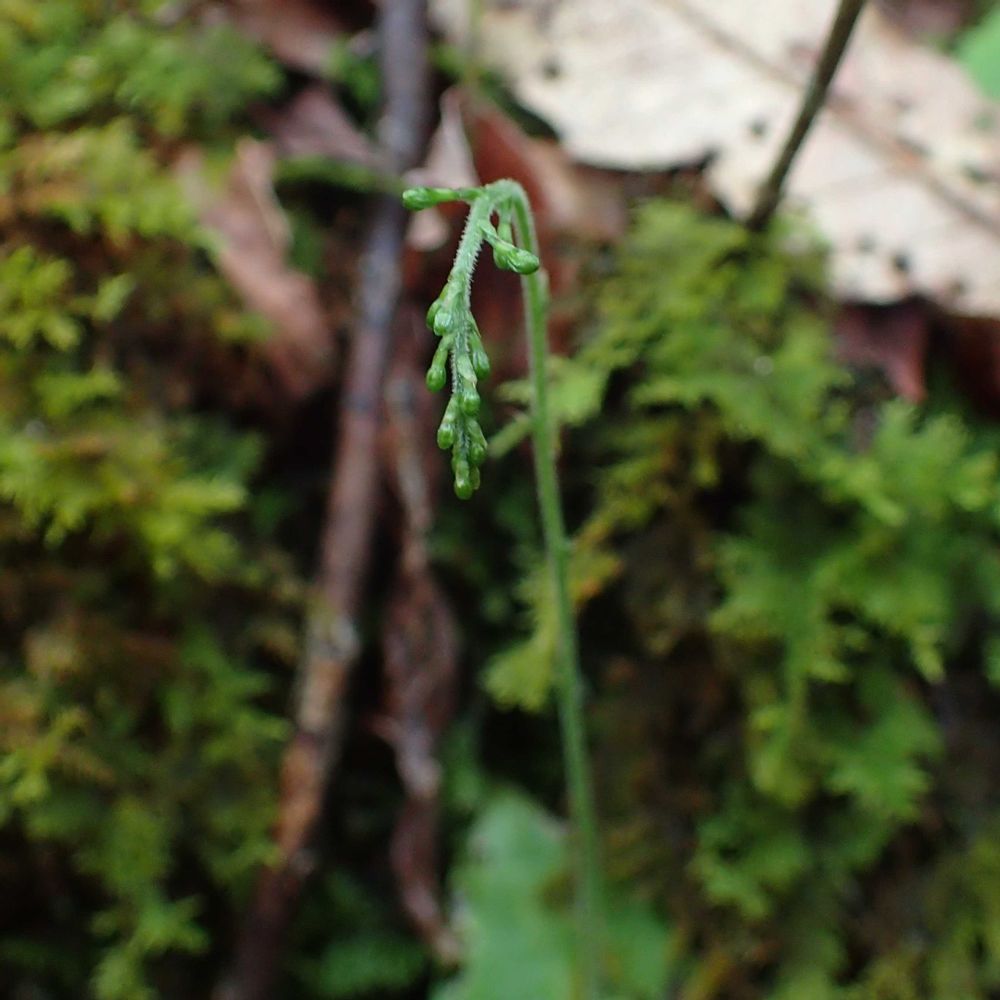 道端でぽつぽつとご飯粒の塊みたいなヒナノシャクジョウ。しゃがんで見るとひとつだけ花が開いてました🌸小さな花芽を伸ばしてるのはアオフタバラン?いつ咲くのかなー🤔